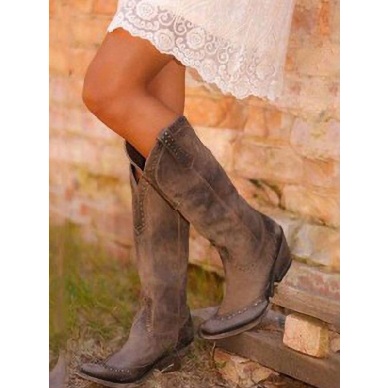 Women's Western Vintage Embroidered Studded Chunky Heel Plus Size Boots