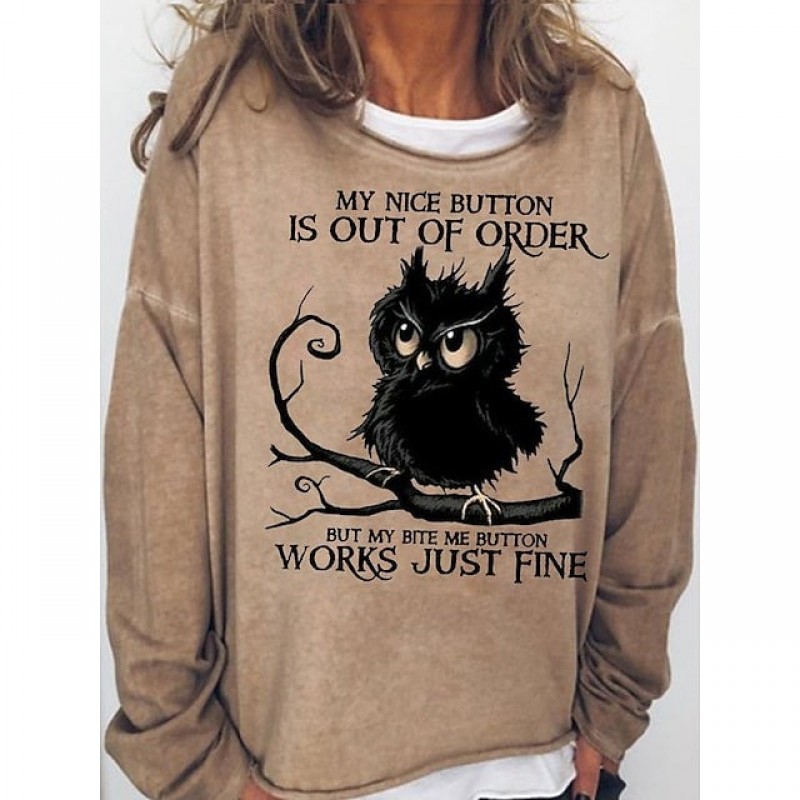 Women's My Nice Button Is Out Of Order But My Bite Me Button Works Just Fine Funny Print Casual T-Shirt