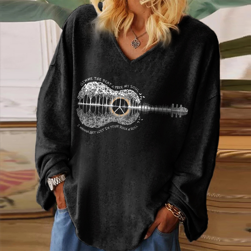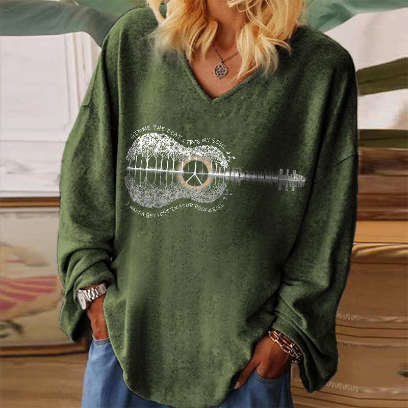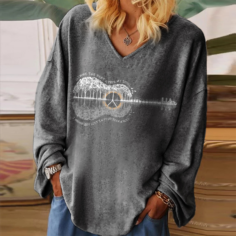 Lovely Cartoon Reindeer Print V-neck Long Sleeve Tee
