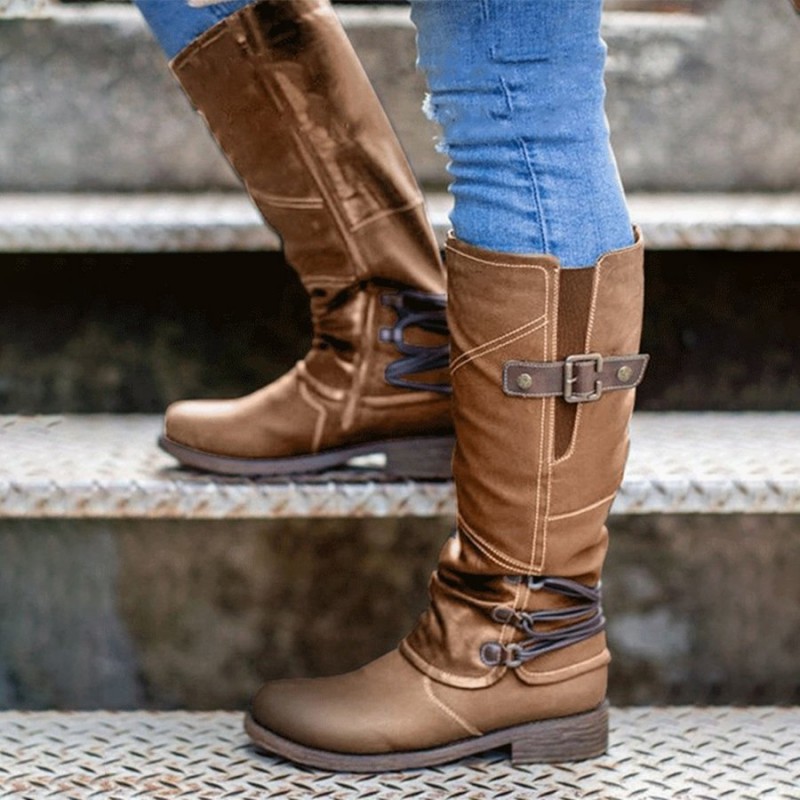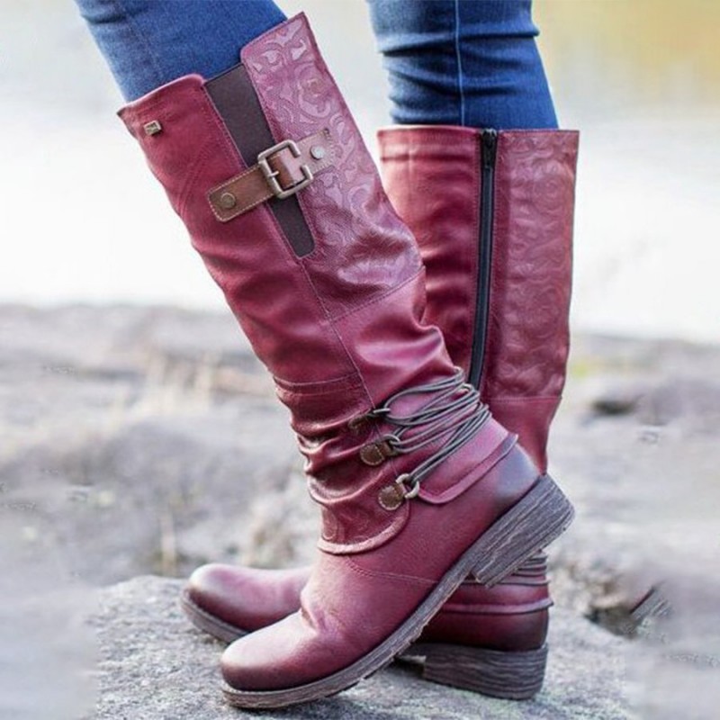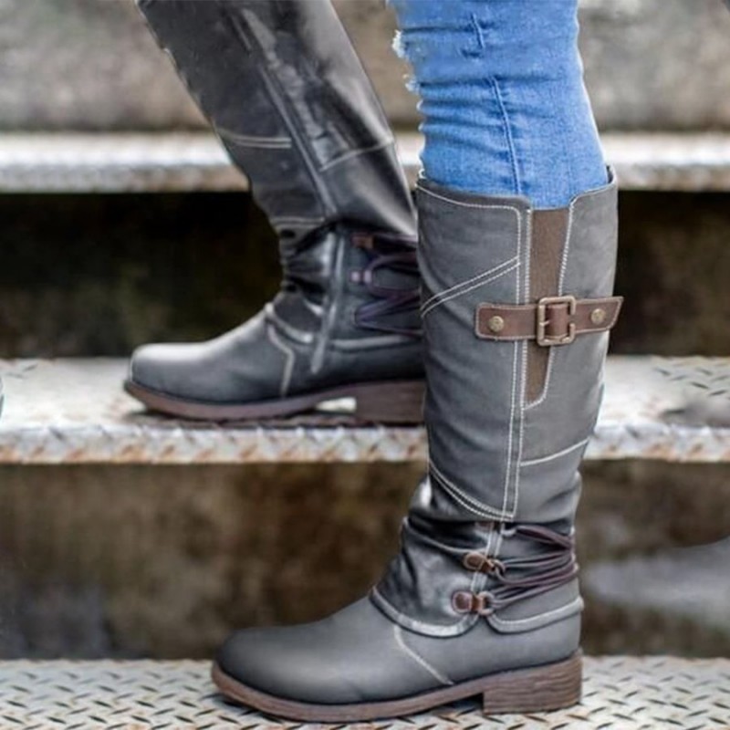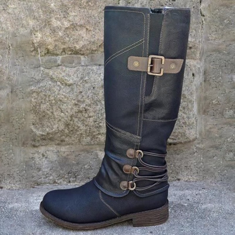 - Product Code: Women's Western Round Toe Square Heel Buckle Knight Boots